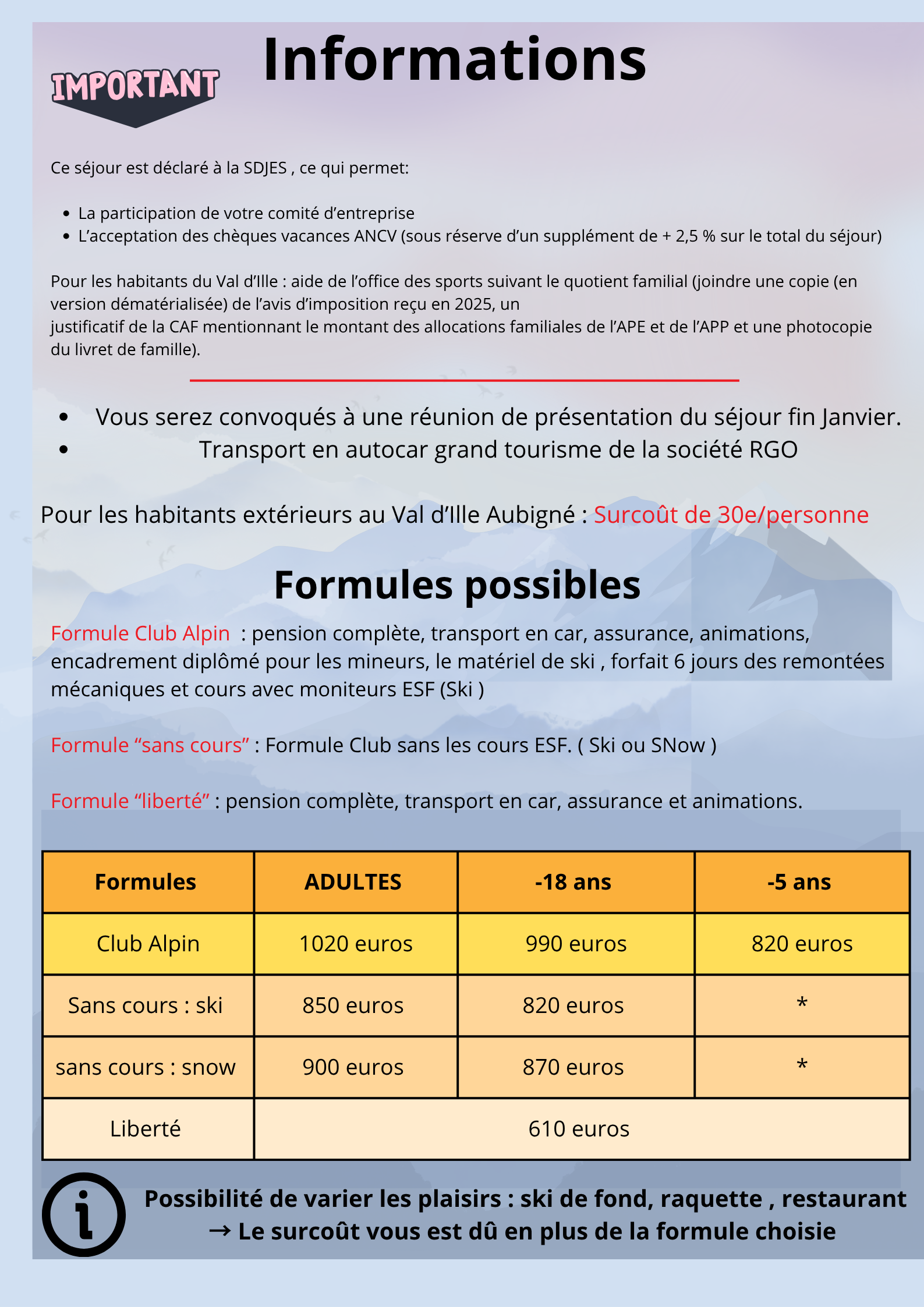 La plaquette pour le séjour ski est en ligne !! Vous avez tous le détail sur la plaquette ci-jointe .
