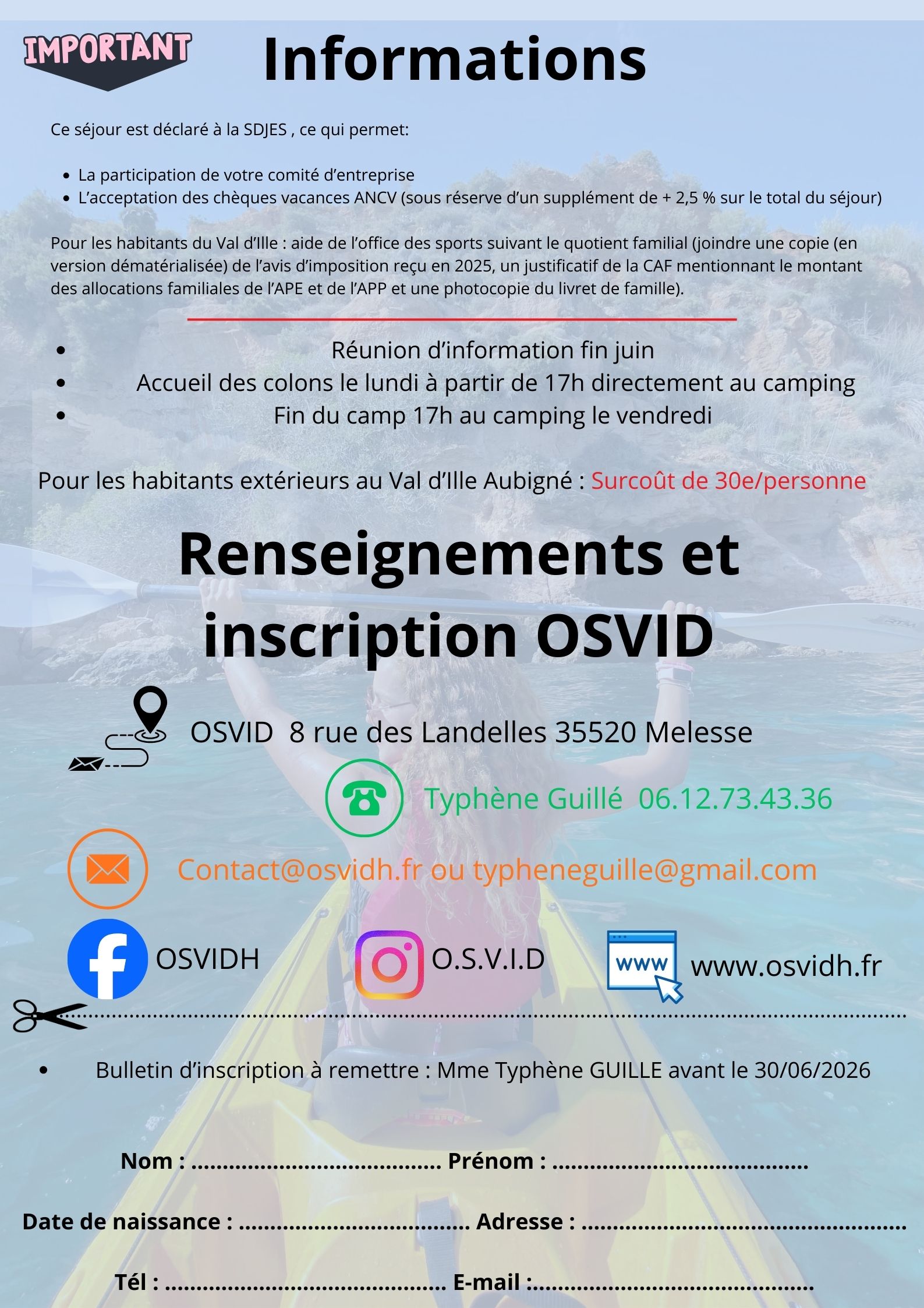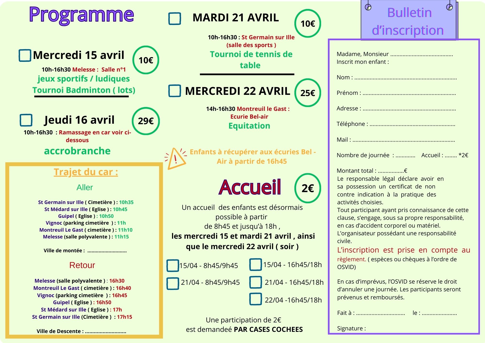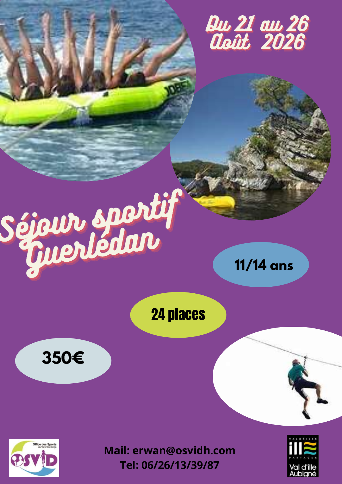 Séjour du lundi 20 au vendredi 24 Juillet pour les enfants nés entre 2011 et 2014 !