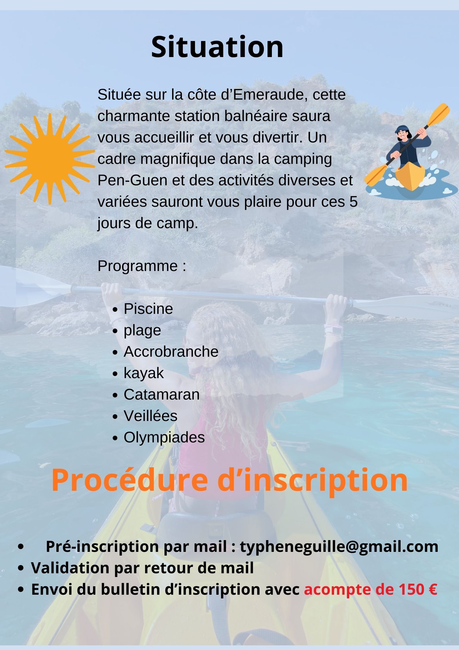 Nouveau camp de prévu cette fois-ci à St Cast Le Guildo. Venez partager le soleil ainsi que les activités sportives prévues : Accrobranche / kayak et Catamaran pour ne citer qu’elles.